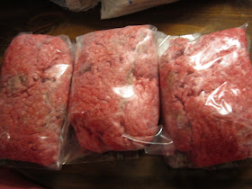 Food City also had a package of ground chuck marked down to $8.67 for just over three pounds. I brought it home and divided it up into three separate freezer bags and stuck those in the freezer.